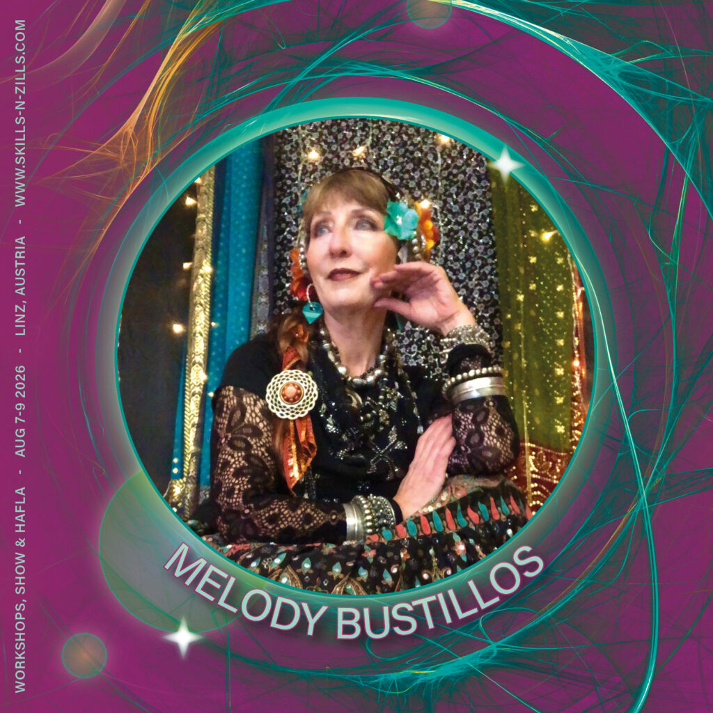 Melody is the founder of teh Salt City Dance Collective. She is a collective member and Artistic Director of Sisterhood of Sword Dance, and a former member of the Davina Tribal Collective. With a strong foundation in modern dance, Melody brings over 40 years of experience across various belly dance styles. Her dedicated study of sword dance began in 1986 with numerous teachers, refining her unique style and skill as a sword handler and freestyle performer.