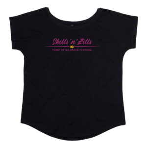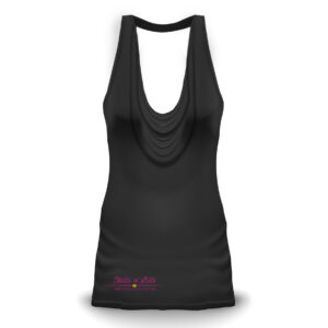 These beautiful handmade waterfall dresses are made from 2-way stretch viscose jersey. They are comfortable to wear for many occasions — training, stage, or everyday — and show your dedication to the festival! They are black, with our logo on the right thigh.